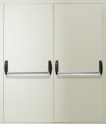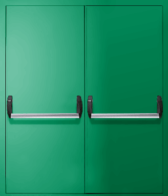 Створка оснащена устройством экстренного открывания – системой «push-bar». Монтаж противопожарных дверей, открывающихся изнутри без ключа, оправдан в помещениях с массовым скоплением людей: торговых и коммерческих зданиях, административных центрах и т.д.