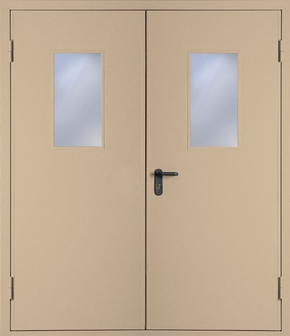 Двупольная противопожарная дверь со стеклом EI 60 с порошковым напылением (RAL 1019)