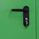 Полуторапольная противопожарная дверь с круглым стеклом (порошок / зеленая)